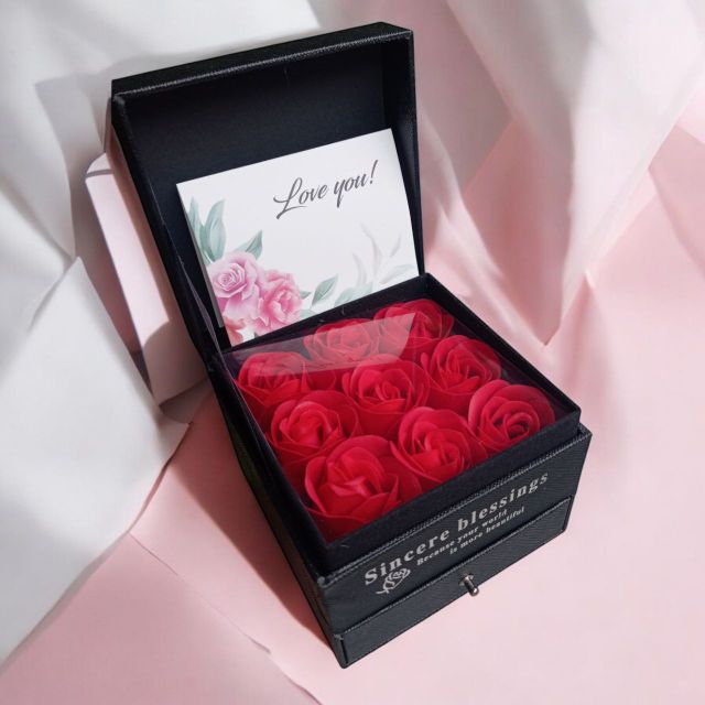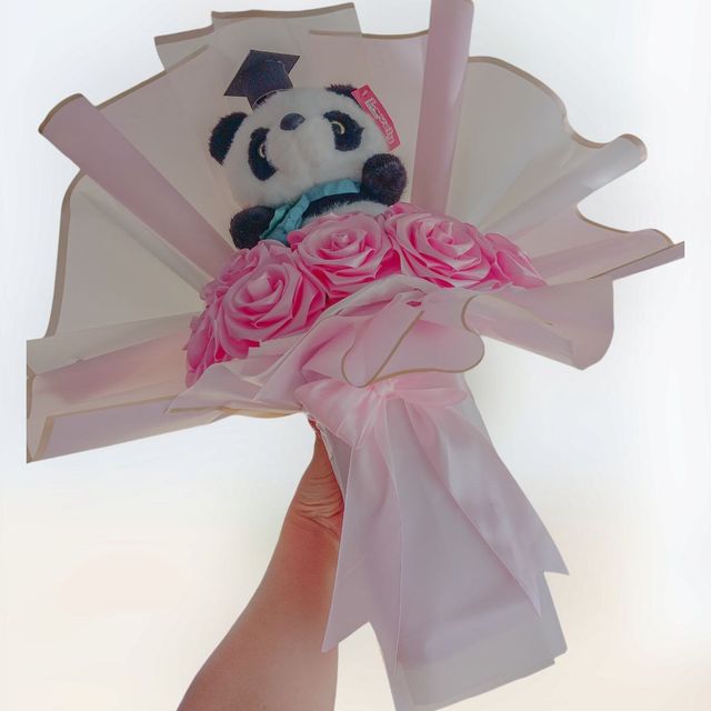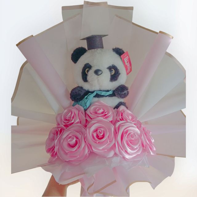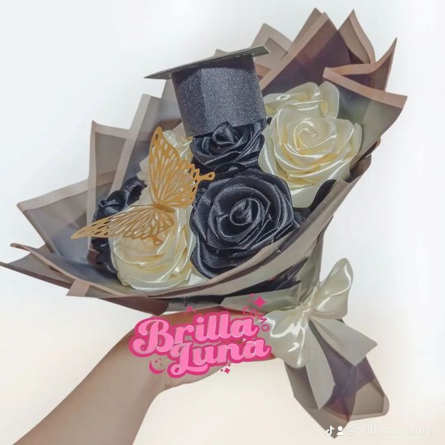 Incluye: - 9 rosas eternas - 1 birrete de grado - 1 mariposa - 1 accesorio - 1 tarjeta - Decoración en papel coreano - Moño decorativo