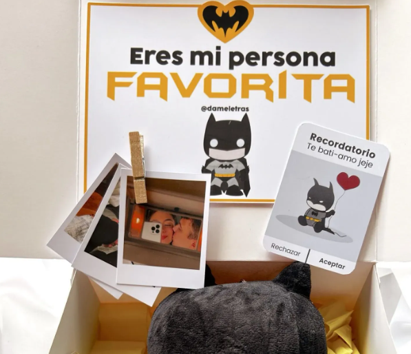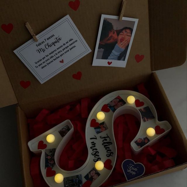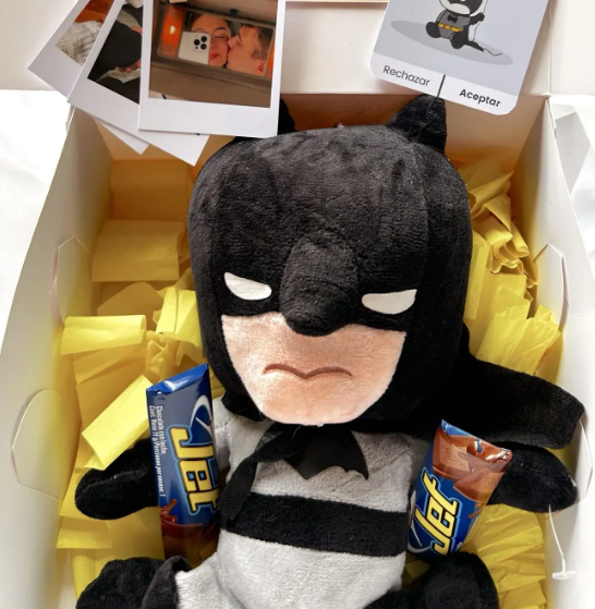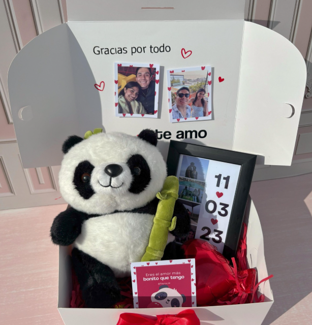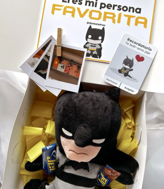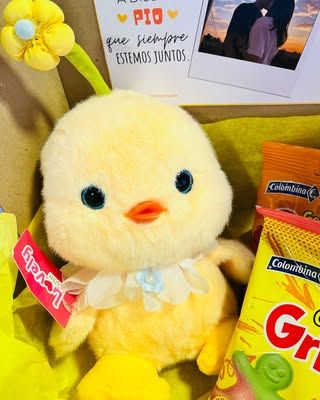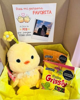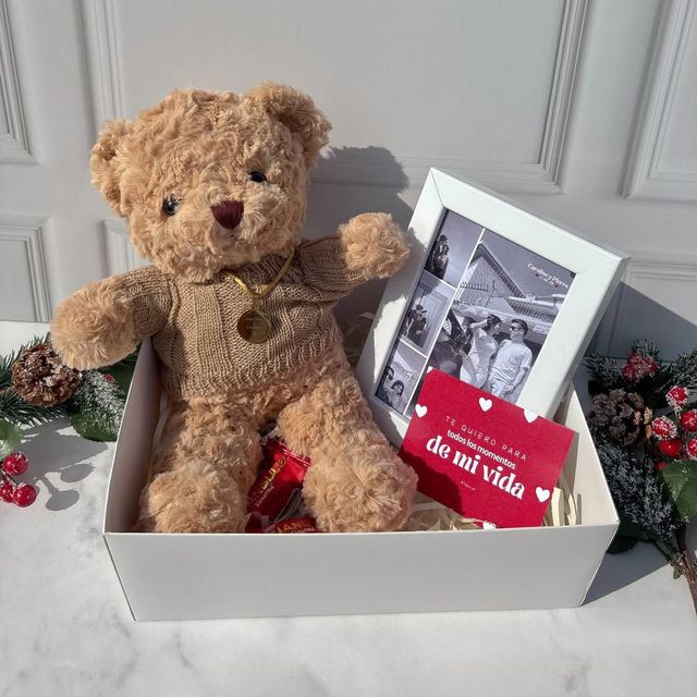 peluche, dulces, 1 foto polaroid, cajita personalizada