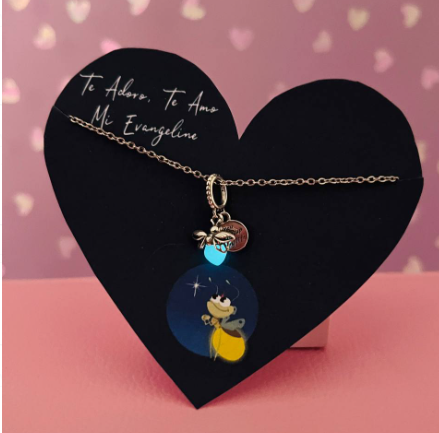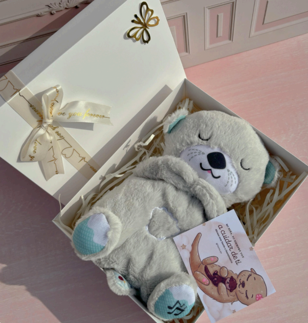 Incluye: Peluche que respira, cofre, cadena, lámpara de tulipanes, caja decorada