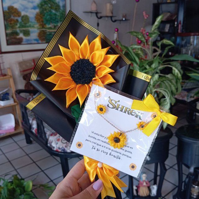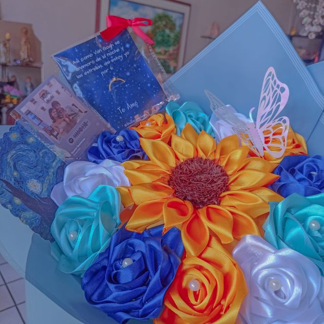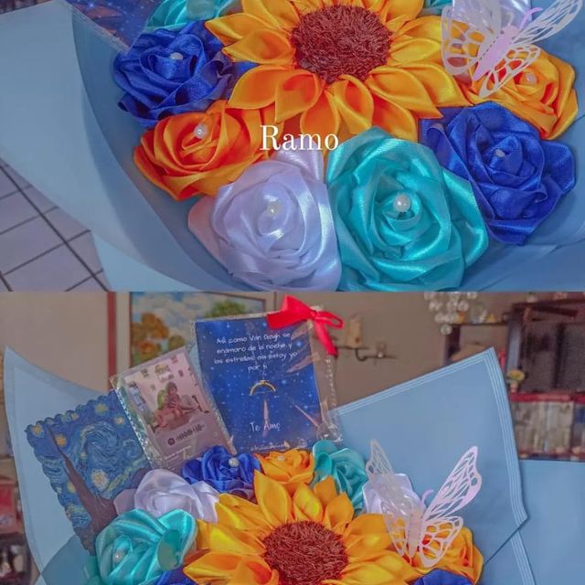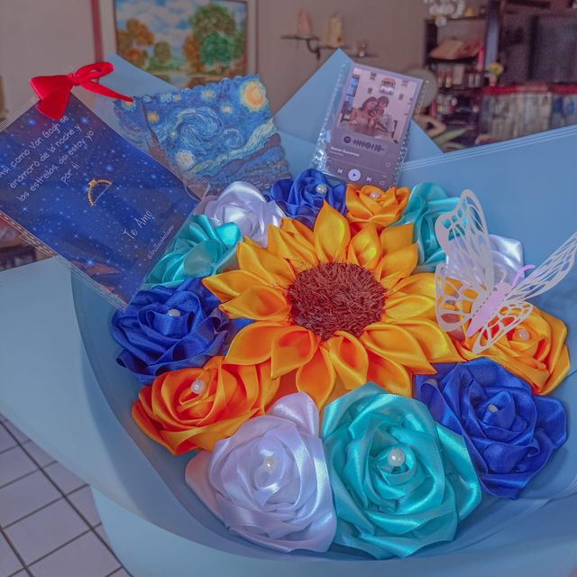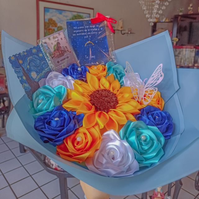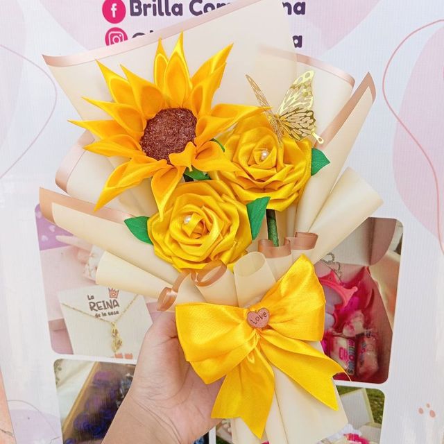 ⭐Ramo de rosas y girasol en tela