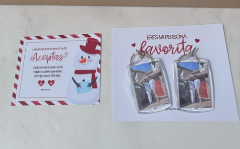 2 llaveros con foto y frase
