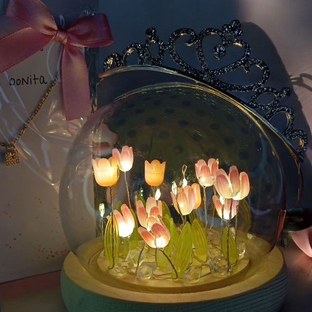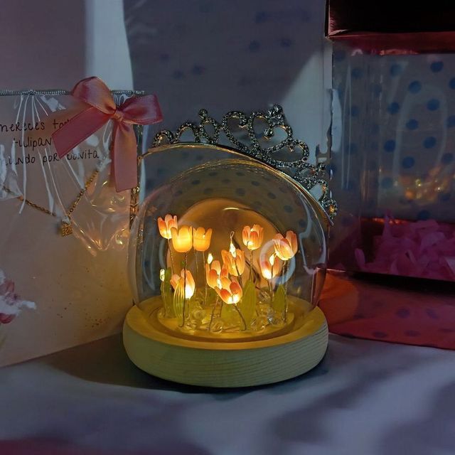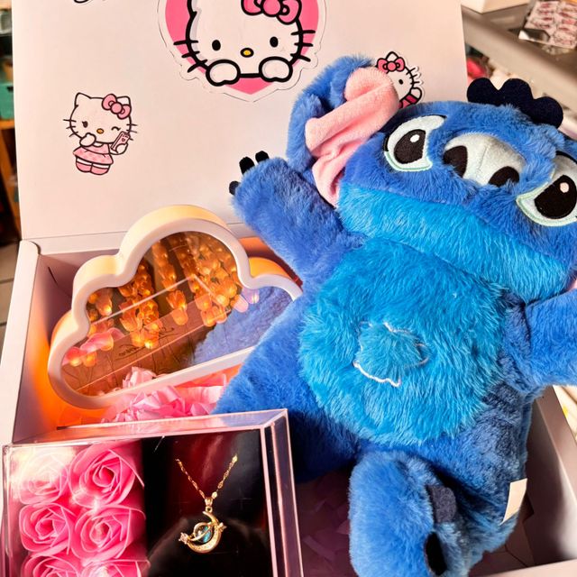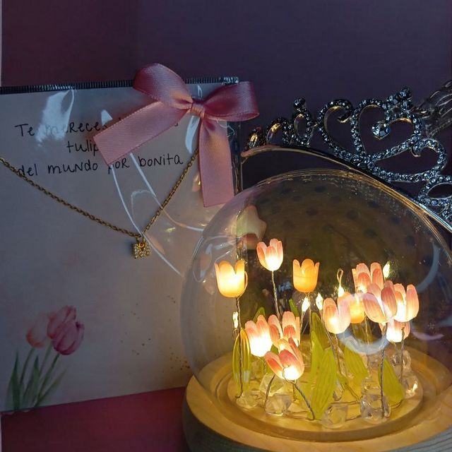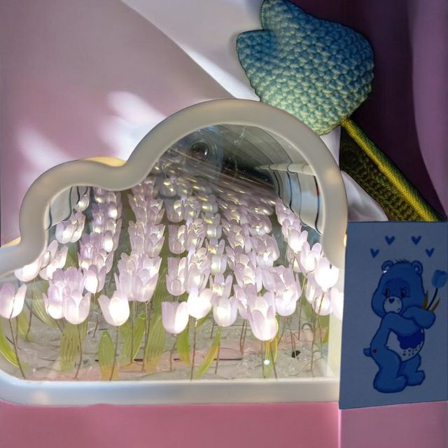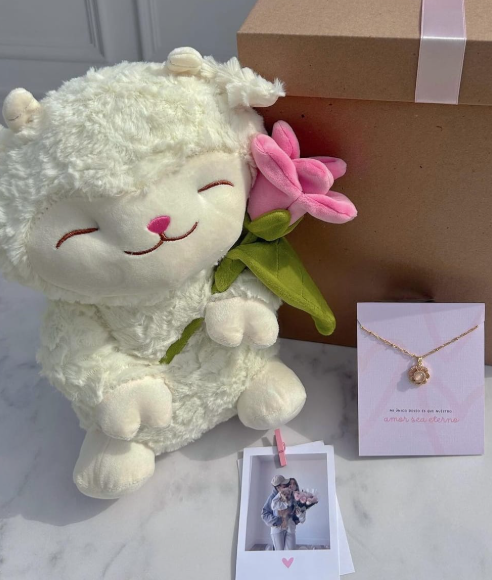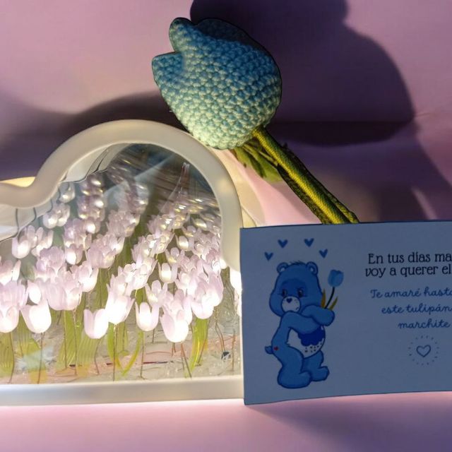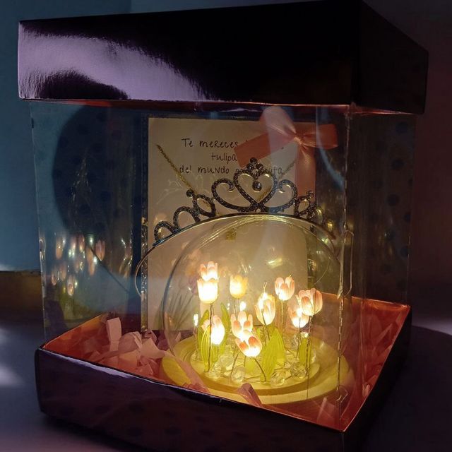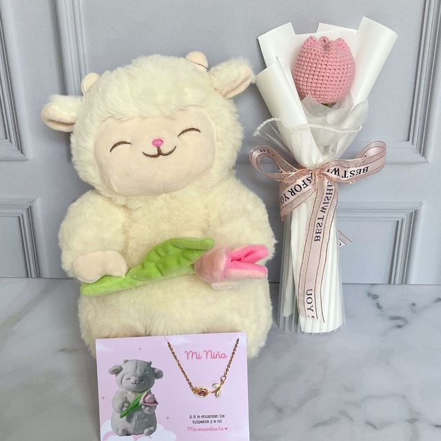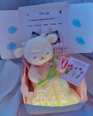 peluche, lampara nube de tulipanes, cajita personalizada