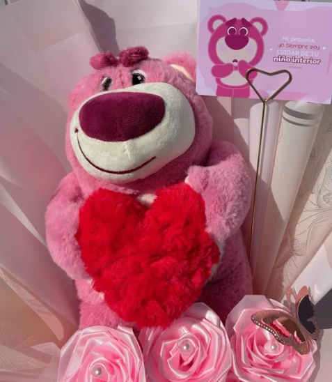 Ramo de 6 rosas eternas con peluche lotso