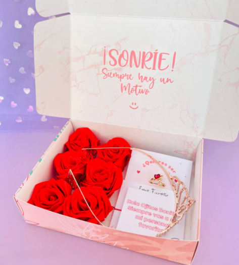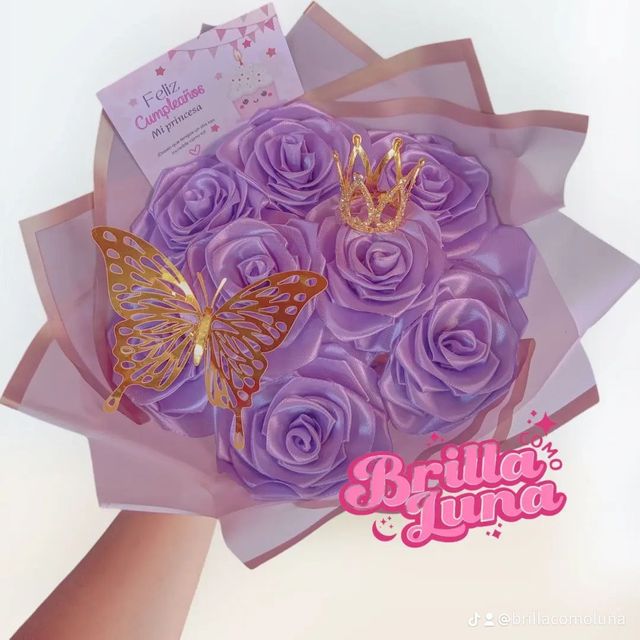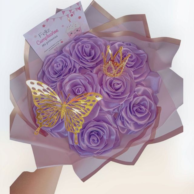 Incluye: - 18 rosas eternas - 2 listones decorativos - 1 Birrete decorativo - Envoltura de papel coreano - 1 mariposa decorativa - 1 mini corona decorativa