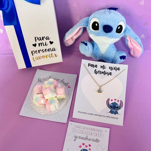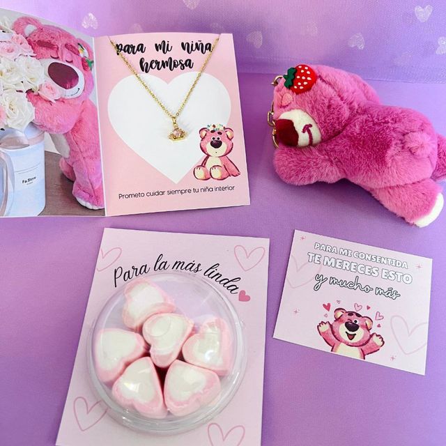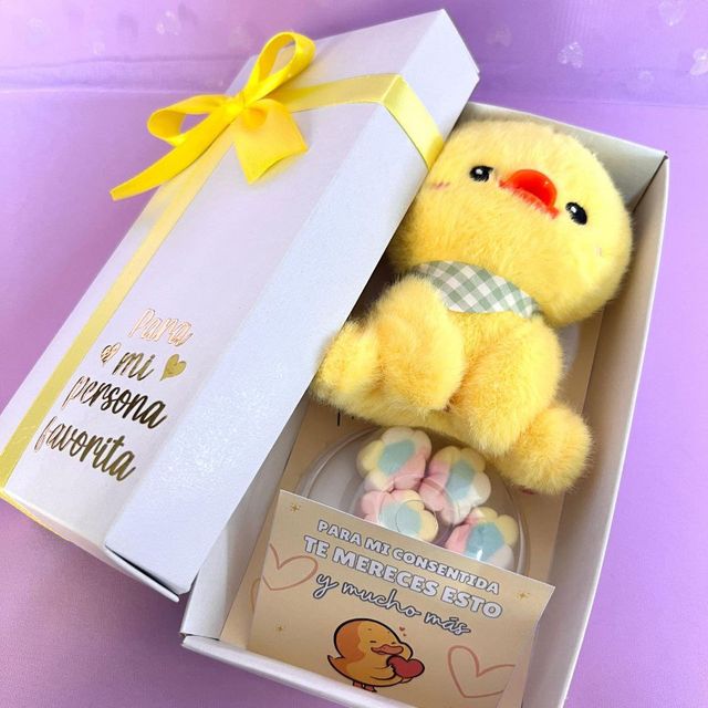 peluche, gomitas, cubiertos, cajita personalizada