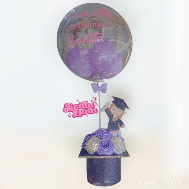 Incluye: - 9 rosas eternas - 1 muñeco de grado - 1 birrete grande - 1 burbuja personalizada - Moño decorativo