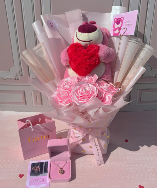 Incluye: - 8 rosas eternas - 1 peluche - Decoración en papel coreano - Moño decorativo